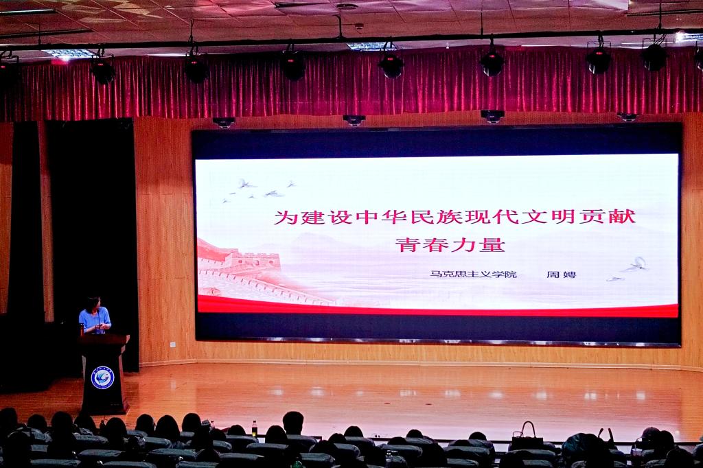 6月20日下午,学院第114场人文与思政讲座在奎文校区16号楼报告厅举行。马克思主义学院周娉老师作了题为“为建设中华民族现代文明贡献青春力量”讲座,2023级400余名学生聆听了讲座。 周娉老师,荣获首届全国高校思想政治理论课教学展示活动特等奖、山东省第七届高校青年教师教学比赛一等奖,是山东省学校思政课“金课”项目主持人,山东高校思政课教学青年名师工作室主持人,曾获山东省学校优秀思政课教师、山东省高校思想政治教育先进个人等荣誉称号。...更多 -