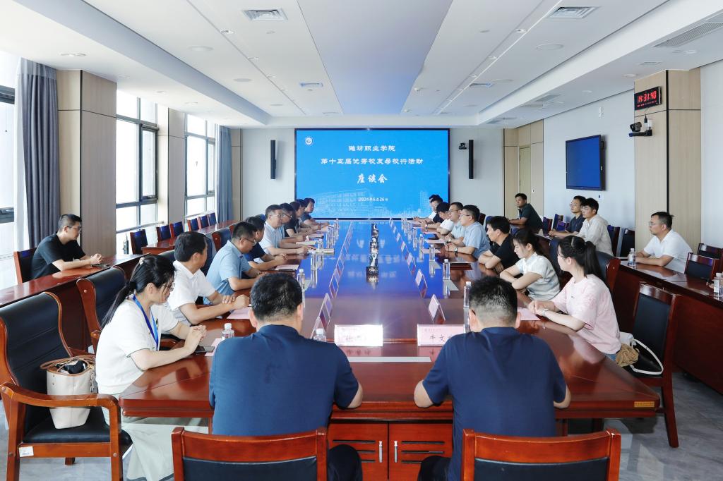 6月27日上午,潍坊食品科技职业学院副校长梁国浚一行5人到我院考察交流。学院党委委员、副院长任培华会见客人,科技处、机电工程学院和信息工程学院负责同志陪同考察。 任培华首先代表学院对梁国浚一行的到来表示诚挚的欢迎,与来访客人共同观看了学院宣传片,并简要介绍了学院办学历史、基本情况、近年来发展建设取得的办学成果。相关部门负责同志分别就科研、校企合作及相关专业学科、实验实训室建设等方面与客人进行了交流。 梁国浚在了解了学院有关情况介绍后,...更多 -