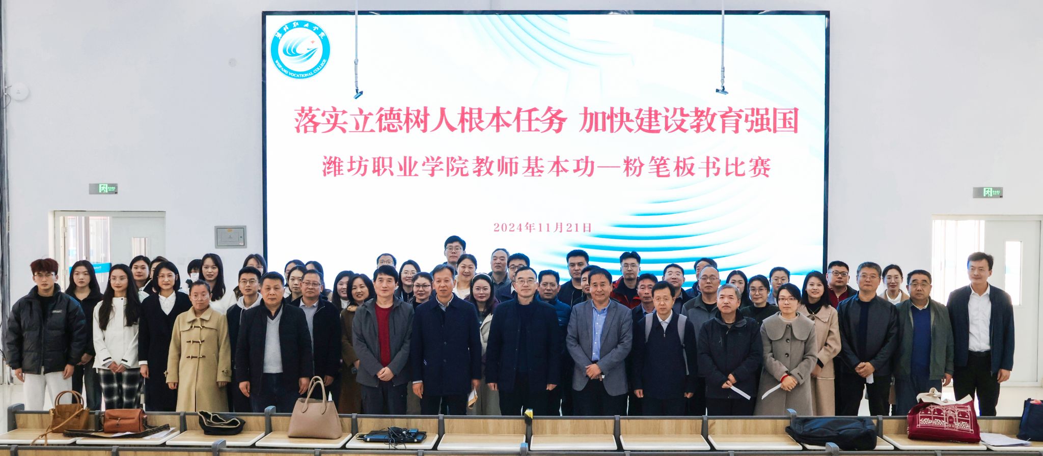 11月21日,“落实立德树人根本任务,加快建设教育强国”潍坊职业学院2024年教师基本功——粉笔板书比赛在滨海校区智泽2号楼举行。共有来自25个中层部门的44名教职工参加比赛。其中,有12位参赛选手是近两年学院新入职教职工。比赛分为规定内容书写组和自选内容书写组两大组别,临场抽签决定书写顺序。规定内容板书组同时抽签决定书写内容。比赛内容选自习近平总书记在全国教育大会上的重要讲话和有关教育工作的重要指示批示、毛泽东诗词、...更多 -