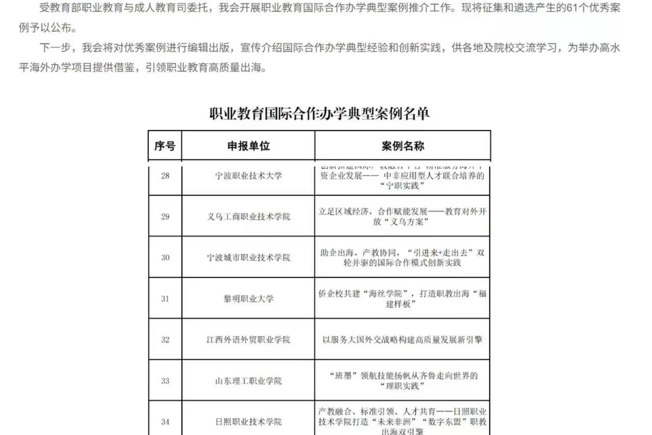 学院国际化办学案例入选教育部职业教育国际合作办学典型案例