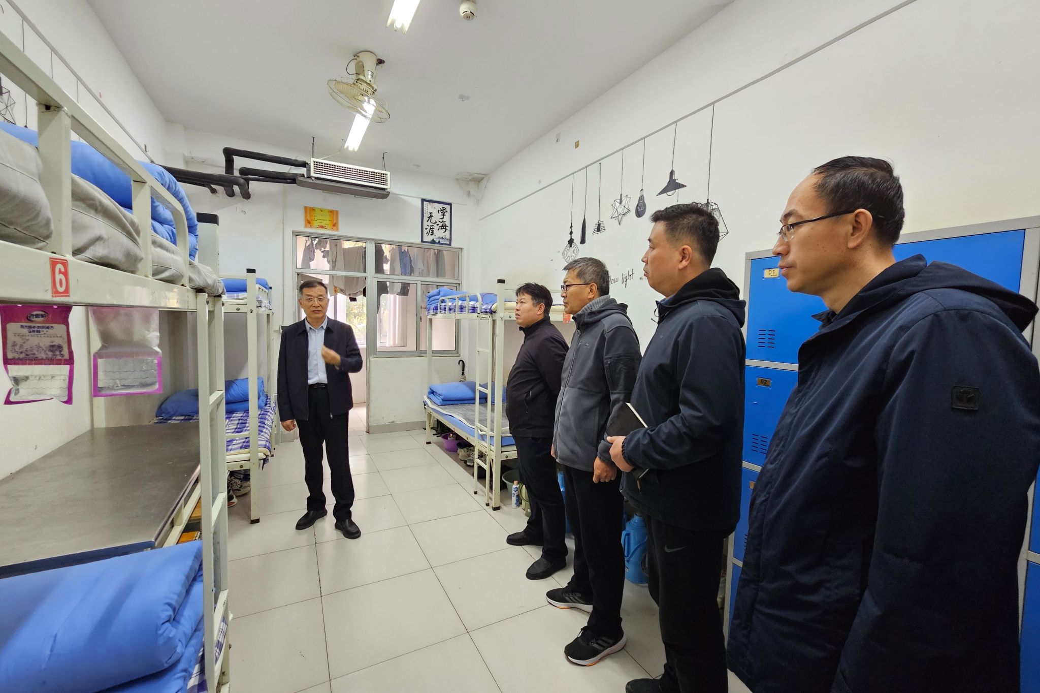 为切实筑牢校园安全防线,营造安全、文明、和谐的学生社区生活环境,10月30日,学院党委委员、副院长任培华深入尚行社区学生宿舍开展安全隐患排查专项活动,团委学生工作处、安全保卫处、化学工程学院主要负责同志及专职辅导员参加活动。本次活动重点围绕违禁电器使用、室内吸烟、管制刀具等安全隐患展开。检查组成员逐一走访学生寝室,细致查看用电设施是否规范,排查大功率违禁电器。过程中,任培华还与辅导员们进行了面对面交流,...更多 -