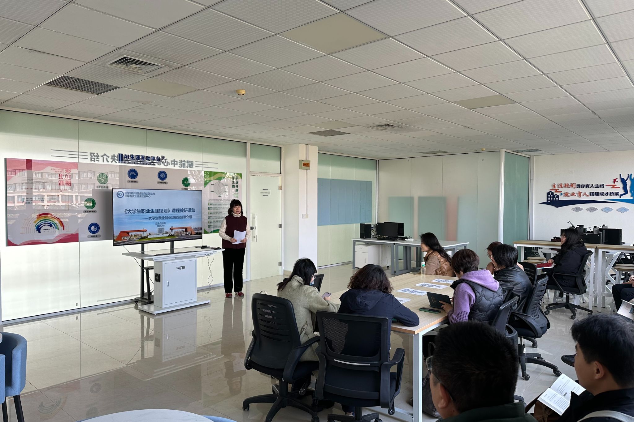 为发挥好学院大学生就业创业赋能中心作用,深入开展《大学生职业生涯规划》课程教学研究,10月29日下午,招生就业处在大学生就业创业赋能中心(滨海校区北区清泽楼三楼)组织开展大学生就业创业赋能实践课教研活动。各二级学院就业课授课教师代表参加了本次活动,通过理论讲解与实践操作相结合的方式,全面掌握赋能实践课程的教学流程及资源使用方法。本次教研活动围绕《大学生就业创业赋能实践课授课方案》展开,招生就业处相关教师详细介绍了赋能中心的功能分区及课程设计理念。...更多 -