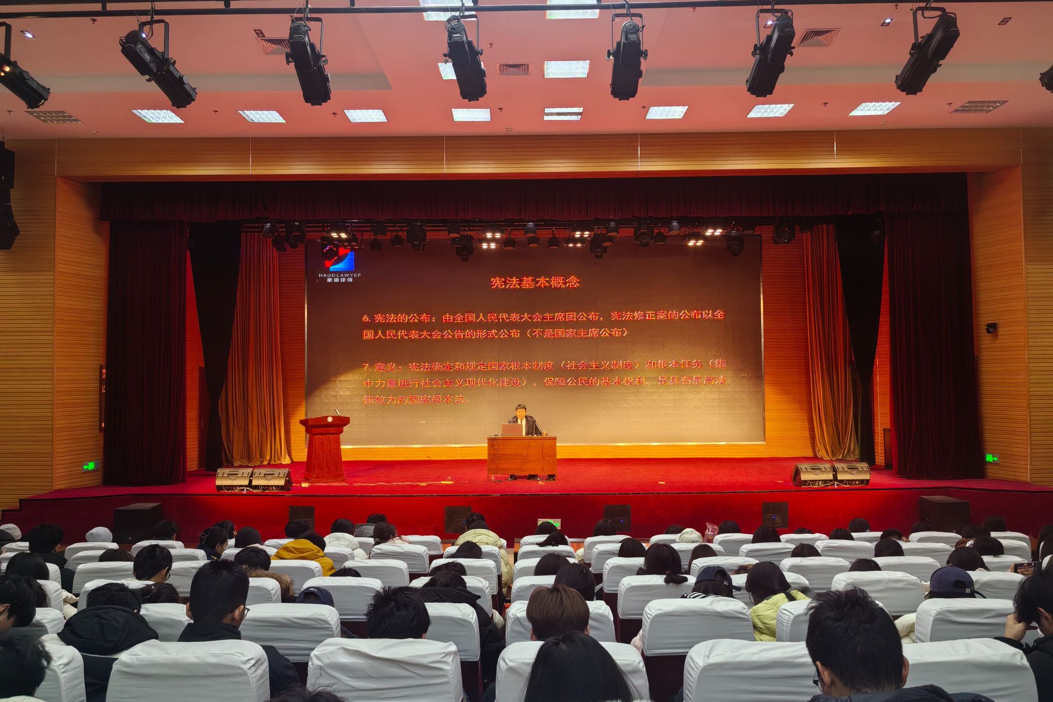 为深入学习宣传贯彻习近平法治思想,推进宪法学习宣传教育,引导师生尊崇、学习、遵守、维护、运用宪法,12月4日,学院举办“国家宪法日”普法教育报告会,马克思主义学院孙天锋老师以“学习宣传贯彻习近平法治思想 推动宪法深入人心”为主题作宣讲报告。马克思主义学院负责同志、思政课教师代表及400余名同学参加报告会。报告聚焦习近平法治思想“十二个坚持”,重点阐释“坚持依宪治国”“坚持以人民为中心”等核心原则,呈现了一场兼具理论深度与实践温度的精彩报告。...更多 -