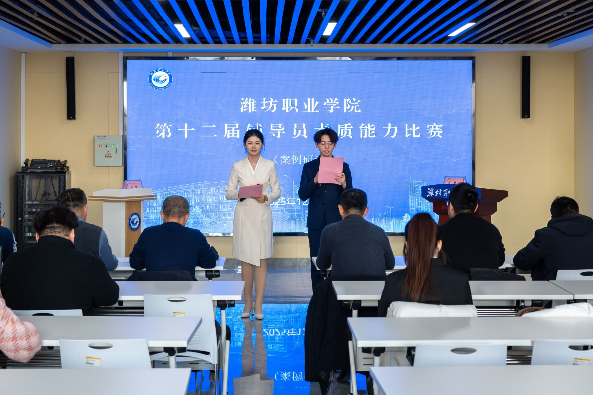 12月18日下午,学院第十二届辅导员素质能力大赛案例研讨与谈心谈话环节决赛在综合楼211会议室与东会议室举行。学院党委委员、副院长任培华出席活动,学生工作处、组织人事处、教师工作部主要负责人及各二级学院党总支负责人担任评委,全体辅导员观摩学习。经过各二级学院初赛的严格选拔与层层筛选,最终14名辅导员脱颖而出,晋级案例研讨环节决赛;13名辅导员凭借扎实的功底,跻身谈心谈话环节决赛。在案例研讨环节,比赛聚焦学生工作中的重点、...更多 -
