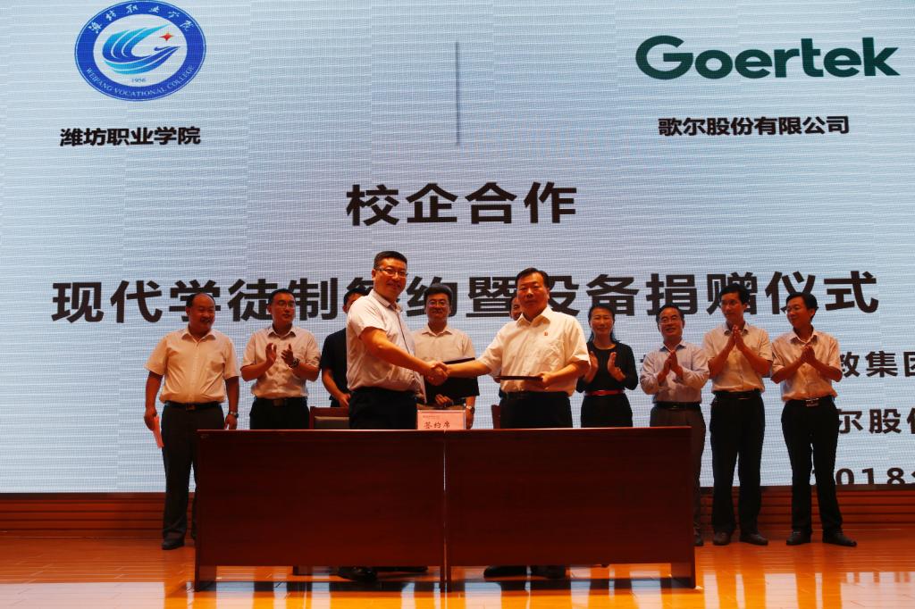 我院与歌尔集团举行校企合作现代学徒制拜师暨设备捐赠仪式