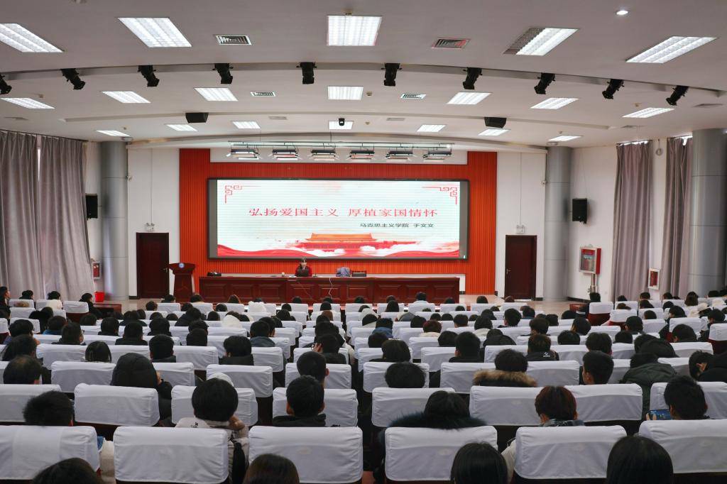 12月21日,第107场人文与思政讲座在滨海校区图书馆报告厅举。马克思主义学院的于文文老师作题为“弘扬爱国主义,厚植家国情怀”的讲座,2023级300余名学生聆听讲座。 于文文老师是市优秀思政课教师,教学经验丰富,多次在省级教学比赛中获奖,所授课程被认定为“市特色示范课堂”、2023年潍坊市思政课“金课”。 主讲人从爱国之情入手,引导同学们深入理解爱国不仅仅是个人对祖国具有的深厚情感。爱国是心之所系、...更多 -