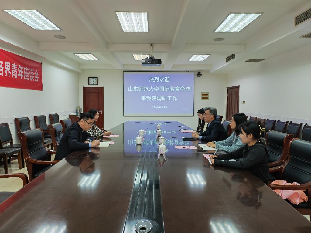 4月23日下午,山东师范大学国际教育学院副院长王其和,学生工作办公室主任、团委书记刘琪一行2人来我院进行访问交流,国际交流与合作处相关负责同志、教师以及由山东师范大学选派在我院进行实习工作的硕士生参加了会议。 会议中,国际交流与合作处负责同志对来访客人表示热烈欢迎。双方共同观看了学院宣传片,详细交流了近年来学院对外交流合作以及国际学生培养等国际化工作相关情况。随后,双方交流了山师国际教育学院实习生在我院的教学实习工作情况。...更多 -