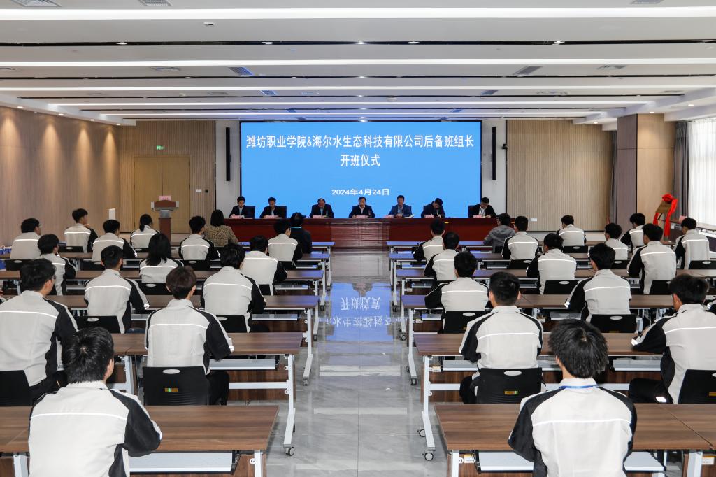 4月24日上午,海尔集团水生态科技有限公司后备班组长班开班仪式在学院行政楼会议中心举行。海尔水生态科技有限公司副总经理高朋理等一行5人,学院副院长贺志强、机电工程学院相关负责同志出席仪式。 学院副院长贺志强发表致辞,肯定了现阶段我院与海尔集团校企合作取得的成绩。他表示,组建后备班组长班是对我院办学质量和教育成果的肯定和信赖,双方应以此为契机,继续挖掘合作深度,拓宽合作广度,力求推动双方产教融合再上新水平。...更多 -