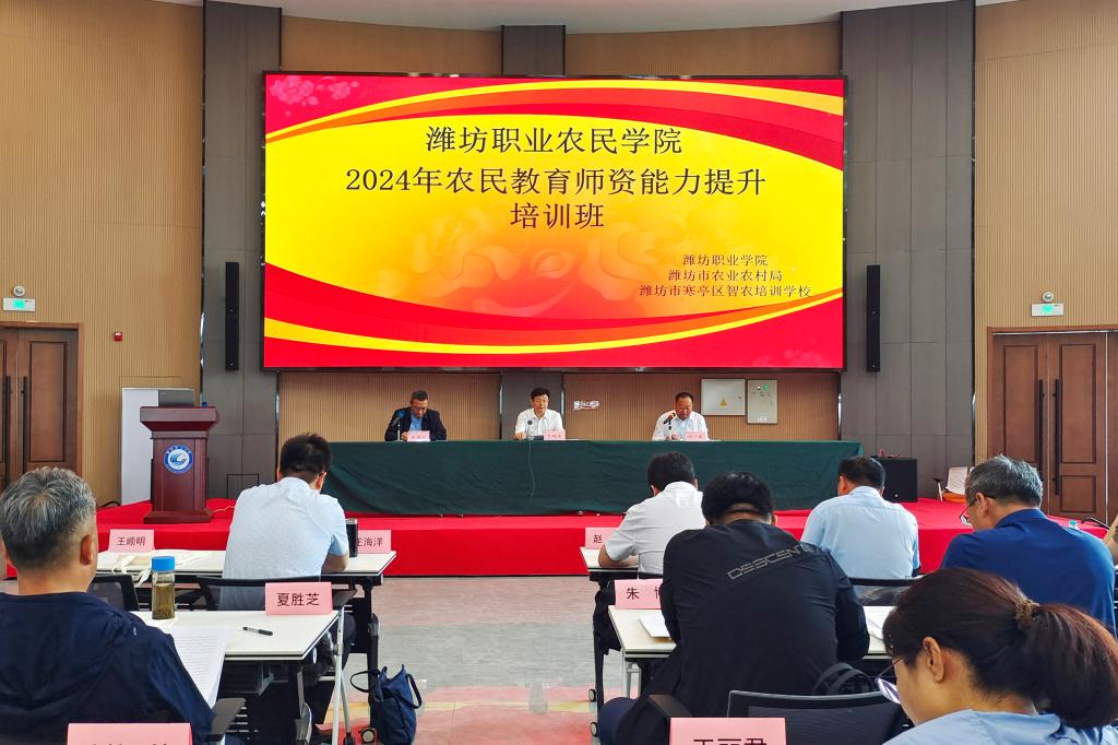 5月20日,潍坊职业农民学院2024年农民教育师资能力提升培训班在潍坊职业学院滨海校区开班。潍坊职业学院党委委员、副院长付一明,市农业农村局党组成员、副局长于鹏展,市农业技术推广中心副主任王焕之出席开班仪式。 本期培训为期2天,采用“理论+实践”的培训模式。培训班邀请省农业农村厅副处长渠通洋围绕发展农业新质生产力、推动农业科技创新体系建设进行专题授课。参训人员实地参观了昌乐西瓜科技示范园、火山农业、庵上湖乡村振兴学院等地。...更多 -