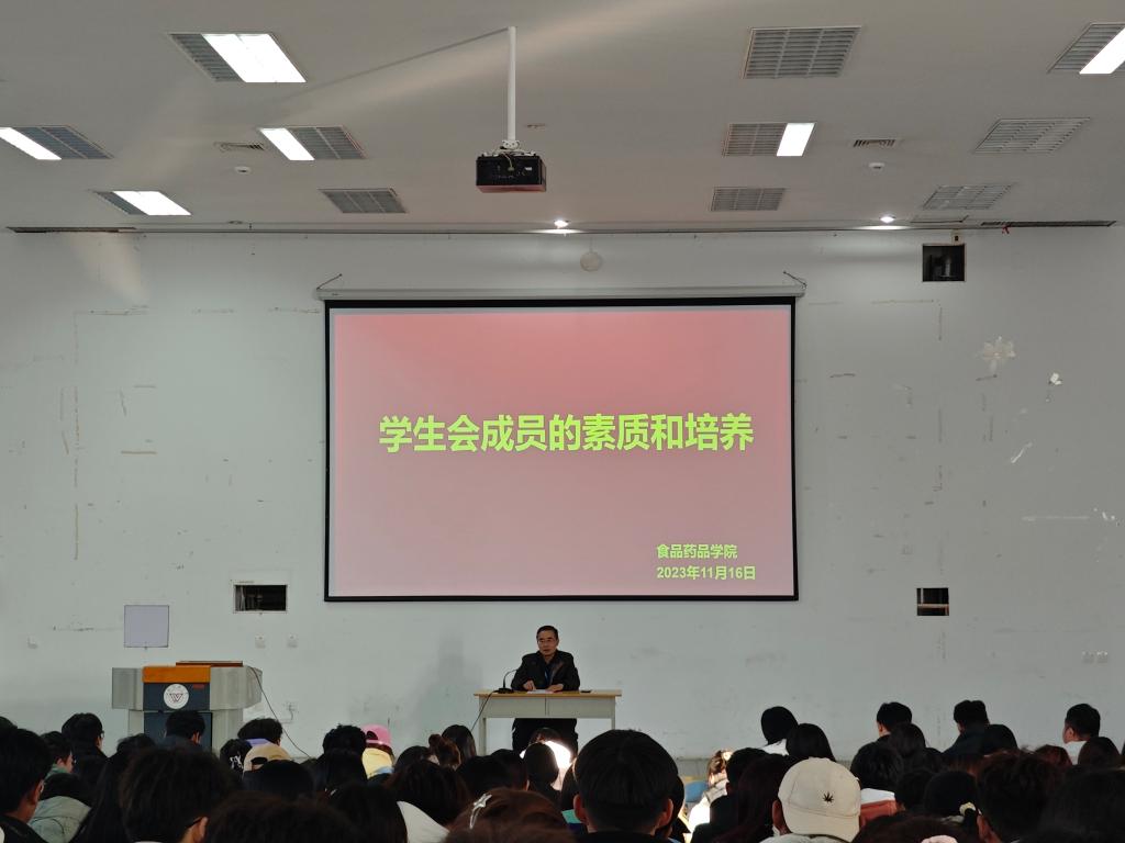 为加强学生会成员综合素质,提升工作能力,加强成员间团结协作,进一步发挥学生会成员的先锋模范带头作用,11月16日下午,食品药品学院在惠泽一号楼B117教室召开学生会成员培训大会,食品药品学院分管学生工作负责人、全体辅导员和学生会全体成员参加培训会。 培训会上,党总支书记从学生会成员应该具备的综合素质以及如何做一名合格的学生会成员等方面给同学们做详细讲解。对参会学生会成员提出新的要求,要坚定信念,潜心...更多 -