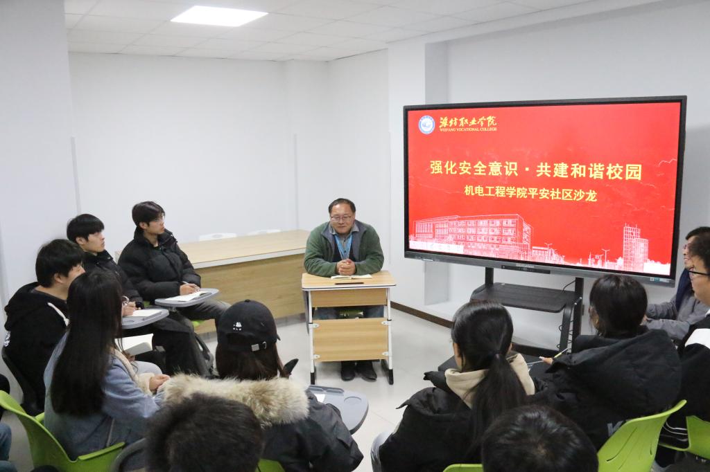 为了进一步加强校园安全工作,构建和谐平安的校园环境,机电工程学院于2023年11月15日晚开展了“强化安全意识,共建和谐校园”的平安社区沙龙活动。 机电工程学院学生管理负责人通过数据分析、案例分享、现场交流等方式,紧密联系校园、学生和辅导员实际工作,对国家安全、学生社团、防范电信网络诈骗和校园治安等方面进行了详细讲解,提高了师生应对突发事件的能力。师生充分认识到校园安全的重要意义,表示将时刻绷紧安全...更多 -
