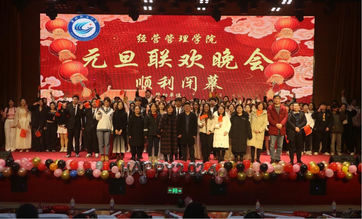 龙腾霄汉开好运,鹊立枝头报佳音。12月27日,经营管理学院在滨海校区图书馆报告厅举办“新起点 新目标 新挑战”元旦晚会,迎接2024年的到来。 晚会分为“逐梦追光崛起经管”“星辰大海潮涌经管”“扬帆起航奋进经管”三个篇章,采用线上与线下相结合方式,将精彩节目呈现给全体师生。暖场舞《Bangbang》《危险派对》用动感的旋律、强劲的节奏拉开晚会的序幕。小品《谁逼疯了周日》、相声《报菜名》通过生动有趣的表演引得观...更多 -