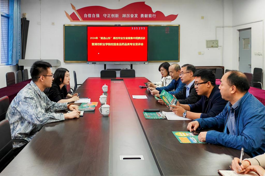 为贯彻落实学院访企拓岗工作要求,提高人才培养质量,5月6日至5月13日,借学院2024年“就选山东”高校毕业生省级集中招聘活动暨潍坊职业学院校园食品药品类专业宣讲会之际,食品药品学院召开校企合作交流会,与来访企业展开交流探讨。食品药品学院党总支负责同志及相关负责人、各企业代表参会。 此次受邀参加校企合作交流会的企业达46家,包括青岛波尼亚食品有限公司、新发制药有限公司等行业知名企业。交流会上,食品药品...更多 -