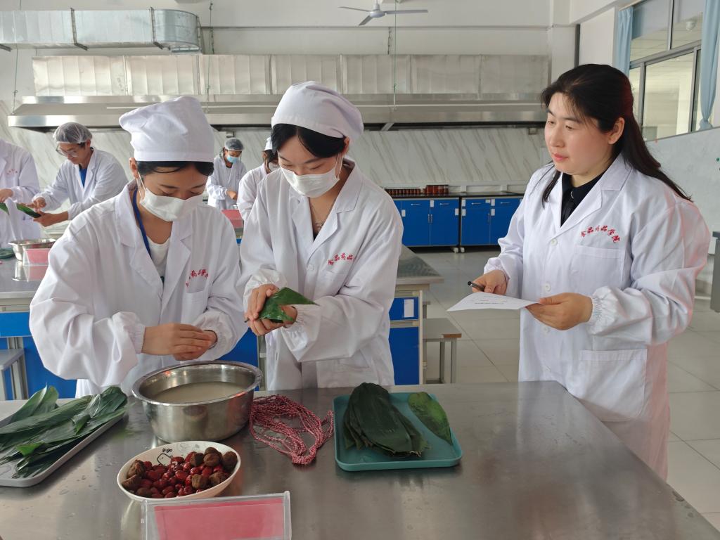 6月6日下午,食品药品学院在木泽楼B305举办端午节包粽子技能大赛,食品药品学院负责同志、食品技术教研室负责同志、骨干教师及2022级、2023级参赛学生参加。 包粽子技能大赛以团队赛的形式进行,2人为一组,设置粽子制作、端午节知识竞赛等环节。在制作粽子环节,参赛学生手法娴熟,捋粽叶、做漏斗状、舀糯米、压紧实、封口、扎捆,动作一气呵成。在知识竞赛环节,同学们展现出极高的热情与参与度,纷纷积极抢答,每一次正...更多 -