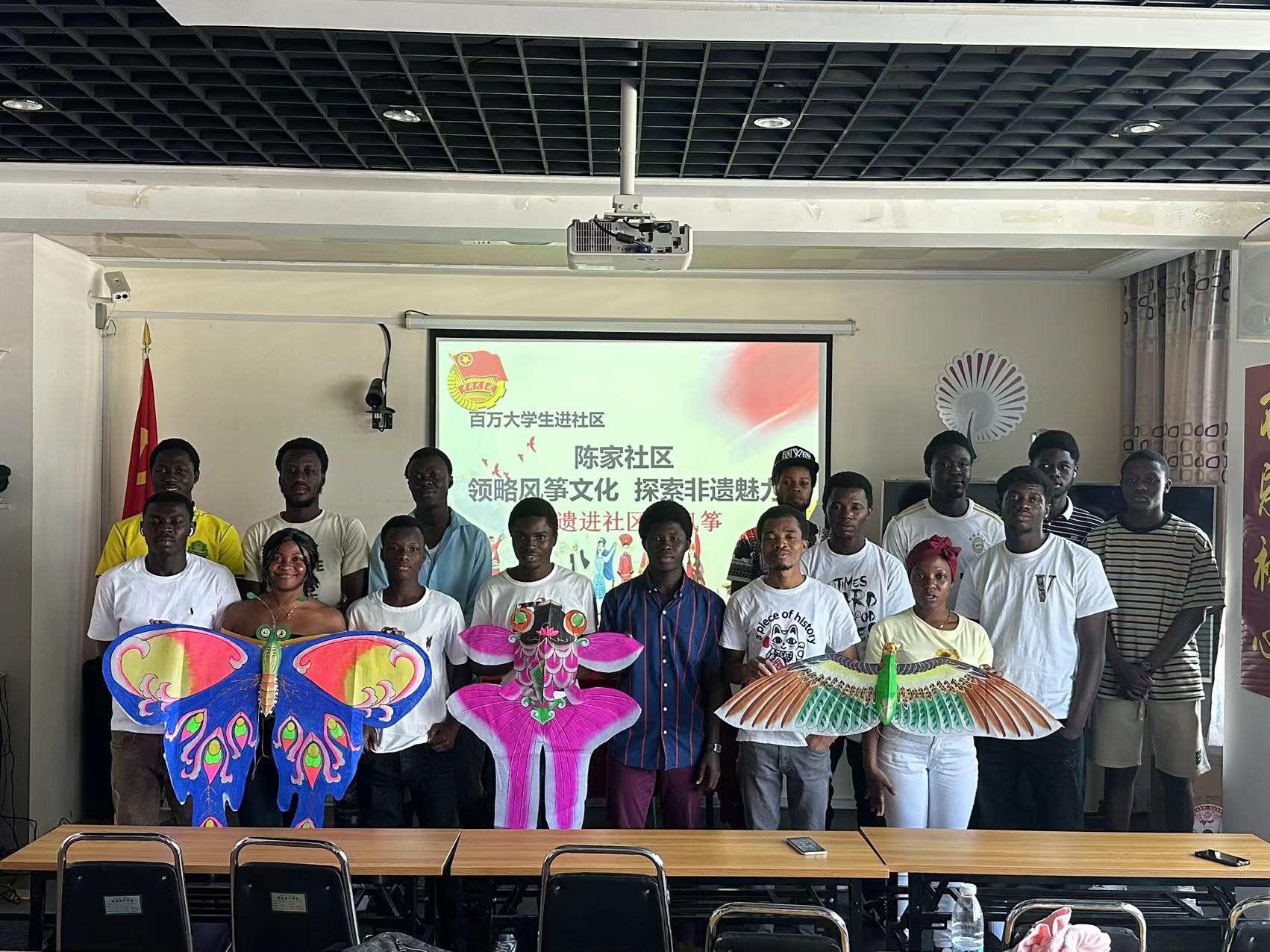 7月31日下午,国际教育学院组织来自加纳的16名国际学生走进陈家社区,参加非遗风筝文化体验活动,感受潍坊当地特色风筝文化的魅力。 活动伊始,来自潍坊风筝博物馆的工作人员介绍了风筝的起源、种类及制作过程,让国际学生了解了风筝扎制和放飞的相关知识。随后,他们带领国际学生们近距离感受风筝的制作工艺,向大家讲述了风筝背后的中国故事和中国智慧。活动后,国际学生接受媒体采访。他们表示,通过非遗课堂,了解了风...更多 -