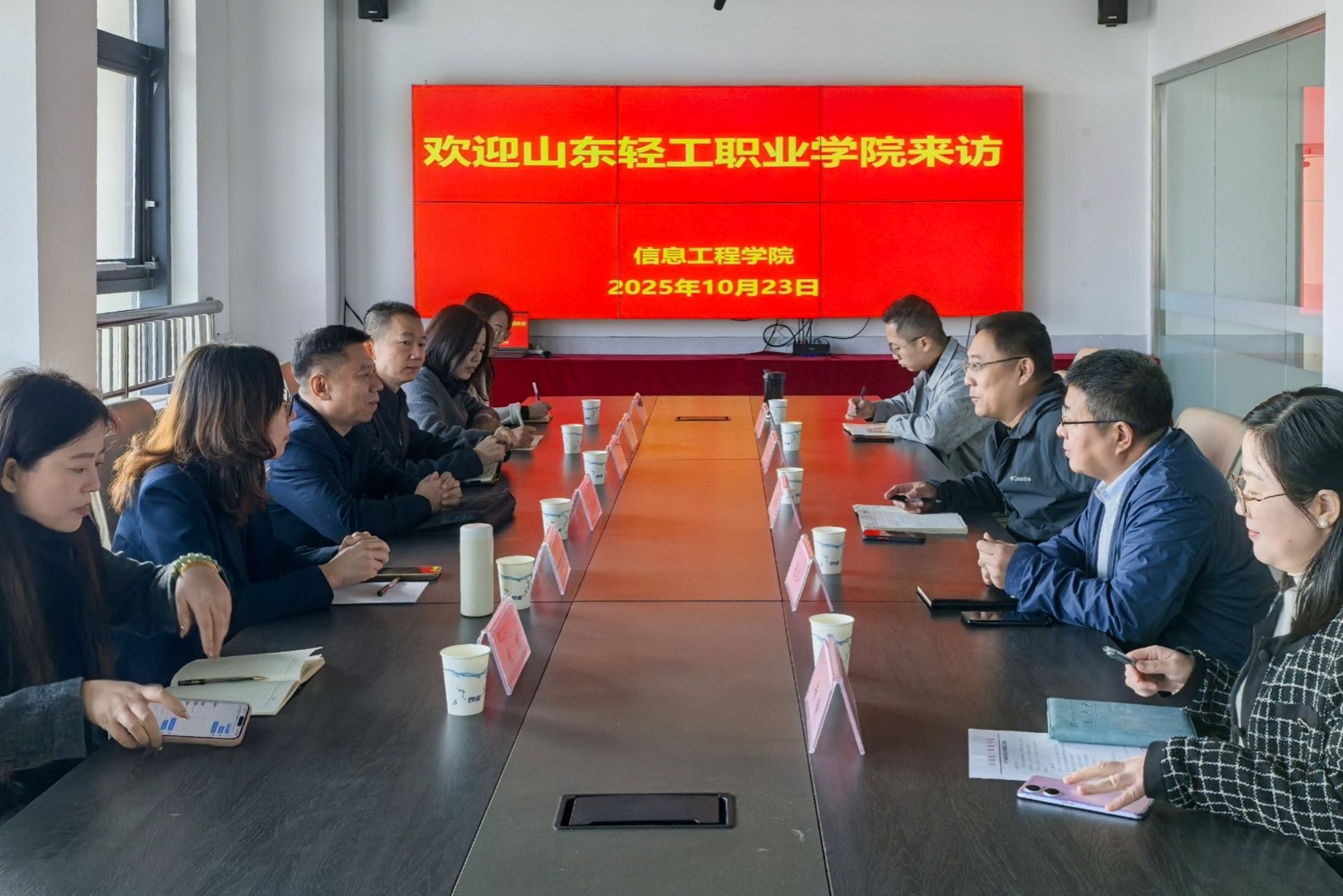 10月23日上午,山东轻工职业学院信息工程系主任、嘉环ICT产业学院院长孟英杰等一行6人到信息工程学院考察交流。信息工程学院主要负责人、分管教学负责人及相关科室人员参加座谈活动。信息工程学院主要负责人对孟英杰一行的到来表示热烈欢迎,并详细介绍了信息工程学院专业(群)建设、师资队伍、人才培养、社会服务等方面的情况。孟英杰对信息工程学院取得的成绩表示高度赞赏,并介绍了山东轻工职业学院信息工程系的专业建设和发展情况。...更多 -