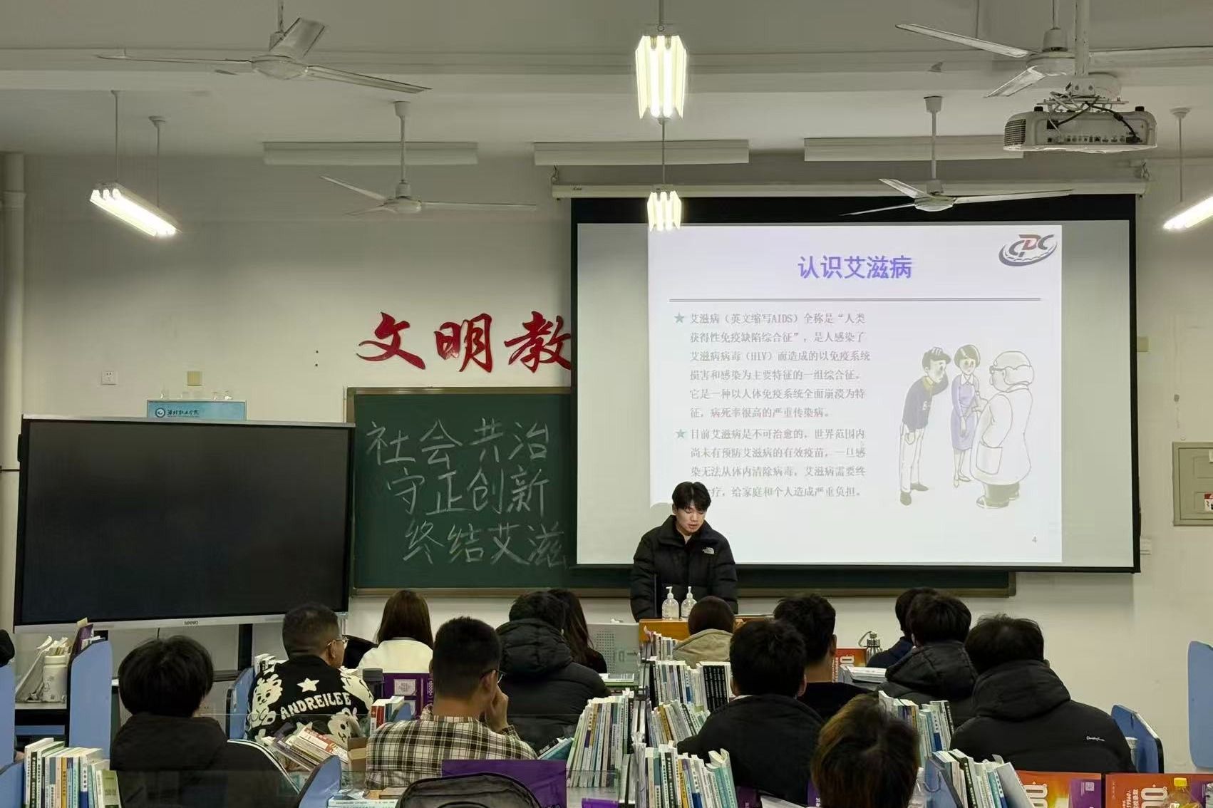 为深入普及艾滋病防治知识、消除社会歧视、凝聚全民共治力量,切实筑牢校园健康防护屏障,12月4日,化学工程学院组织开展“社会共治,守正创新,终结艾滋”主题团日活动。团课采用“PPT系统讲解+纪实短视频展播+互动答疑”的多元形式,让科学防艾理念入脑入心。活动伊始,一段记录艾滋病患者真实生活的短片打破了认知隔阂,让同学们深刻意识到,防艾不仅是公共卫生命题,更是关乎生命尊严的社会课题。知识讲解环节中,团支书从艾滋病核心定义切入,...更多 -