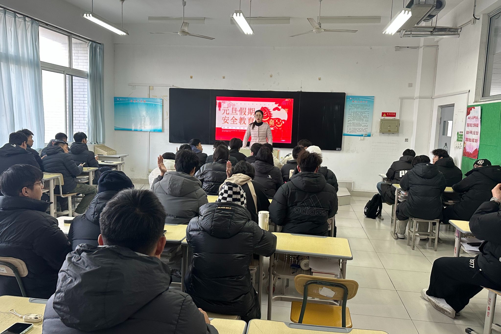 元旦将至,为增强学生安全防范意识,确保假期校园及学生个人安全,营造平安、祥和的节日氛围,12月30日,汽车工程学院组织各班级开展“筑牢安全防线 护航平安校园”元旦安全教育主题班会。班会围绕节假日期间常见的安全风险展开,内容涵盖交通安全、用电防火安全、防诈骗、防盗抢、饮食卫生以及网络安全等多个方面。各班级辅导员通过案例剖析、视频警示、制度解读、互动问答等形式,向同学们详细讲解了冬季出行注意事项、宿舍电器使用规范、...更多 -