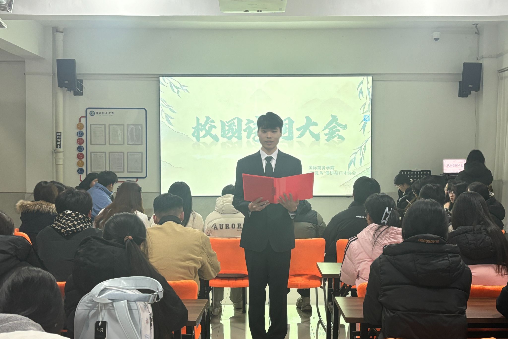 为传承中华优秀传统文化,陶冶学生情操,引导学生在诗词中感悟经典魅力、涵养精神品格,12月30日,国际商务学院于蕙兰社区举办“雅韵传薪火,诗心映韶华”校园诗词大会。来自各二级学院的诗词爱好者齐聚一堂,以诗会友,共品经典,开启了一场穿越古今的文化对话。大会设置“慧眼识诗”“诗词接龙”两个环节,形式新颖、层层深入,全面考验选手的诗词积淀与应变能力。在“慧眼识诗” 环节,精心设计了三类题型:声情并茂的音频题、意境悠远的图画题、...更多 -