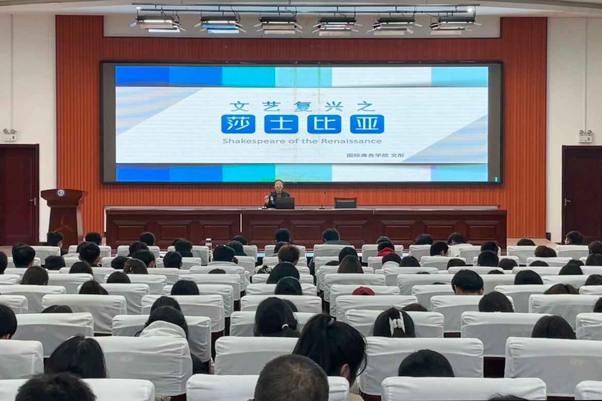 11月21日下午,学院第119场人文与思政讲座在滨海校区清泽楼报告厅举行。国际商务学院文彤老师作题为“文艺复兴之莎士比亚”的讲座,2024级400余名学生聆听了讲座。