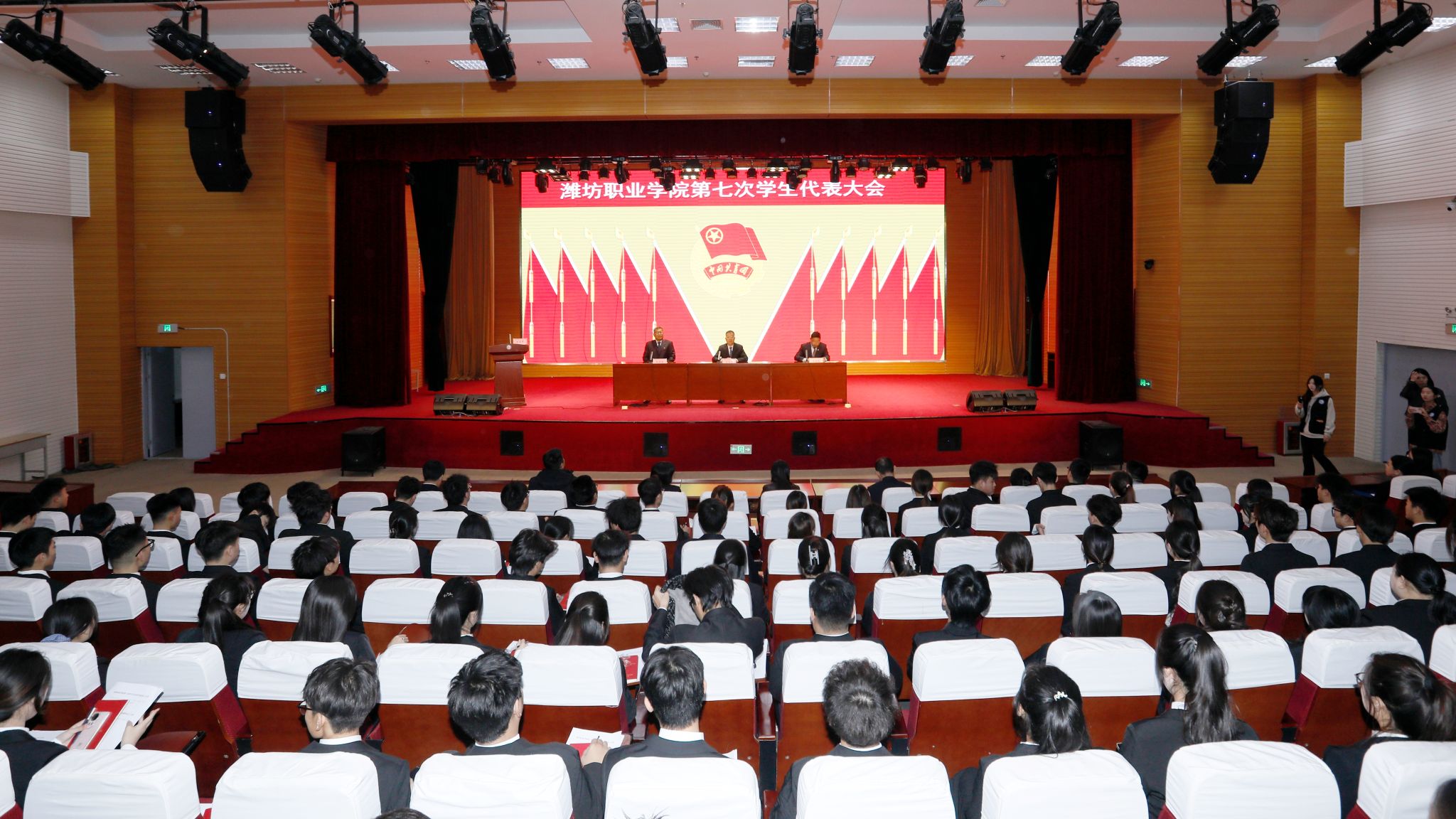 2024届学生会主席石鑫阳同学作题为《“开拓奋进建新功,笃行实干勇作为”书写为中国式现代化挺膺担当的青春篇章》的工作报告。机电工程学院卢良宇同学作新一届校学生会主席竞选发言。本次大会听取和审议了《潍坊职业学院学生会章程》《潍坊职业学院第七次学代会工作报告》《潍坊职业学院第七次学生代表大会提案工作报告》,选举产生了新一届学生会委员会委员和学生会主席团成员。大会在雄壮激昂的中国共产主义青年团团歌中闭幕。