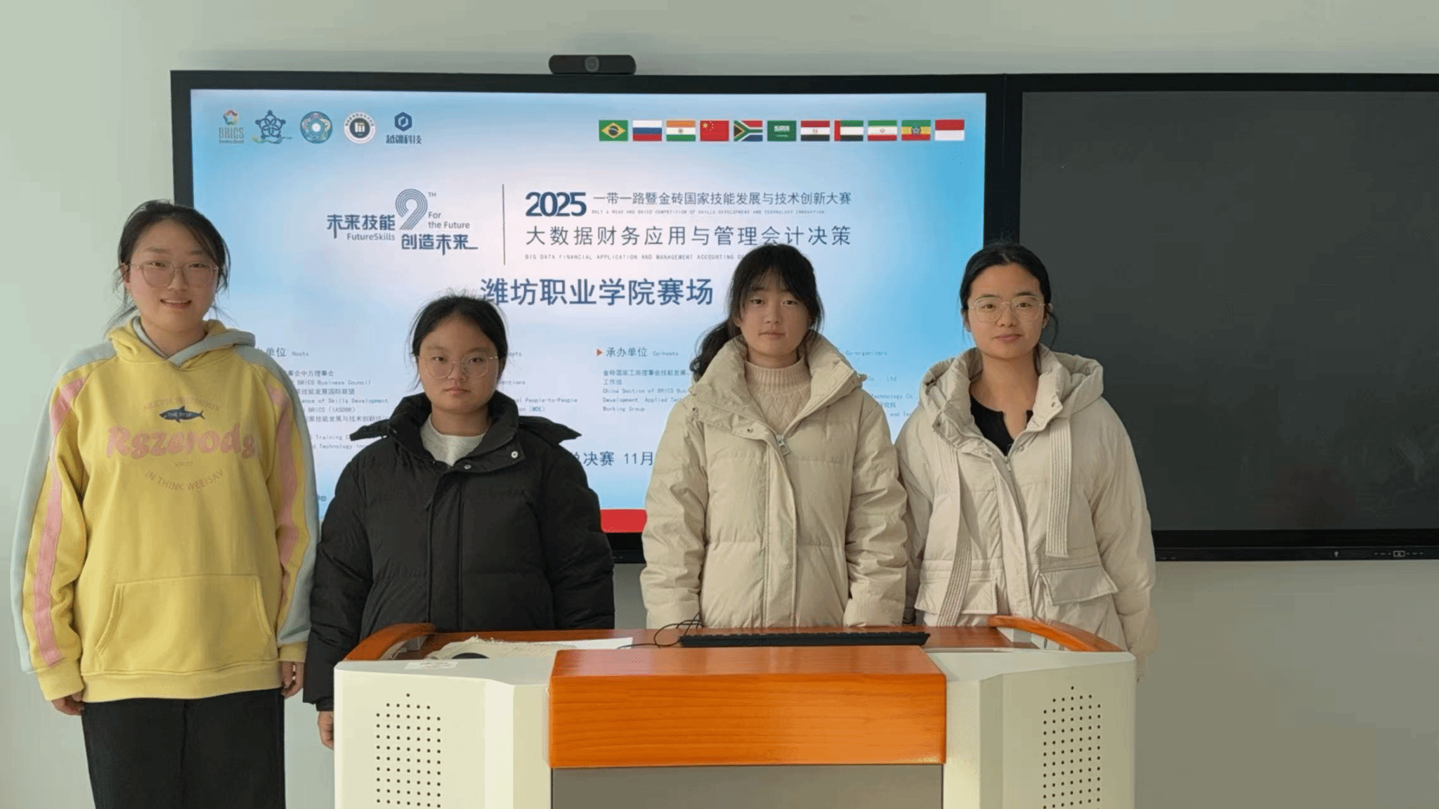 近日,2025年“一带一路”暨金砖国家技能发展与技术创新大赛“大数据财务应用与管理会计决策”赛项总决赛成绩公布。经营管理学院大数据与会计专业王悦铱、高骏骏、阚宇、王安琪四位同学,凭借良好的专业素养和沉着冷静的临场发挥,荣获高职组国赛一等奖,教师分别获二等奖、三等奖,学院获团体最佳组织奖。