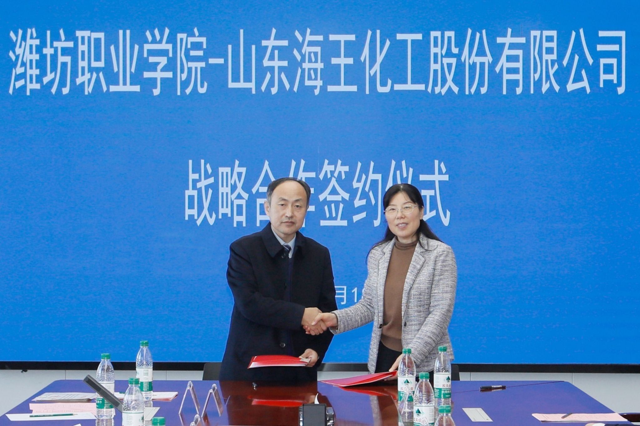 弘润石化(潍坊)有限责任公司战略开发部部长张范围绕石化行业发展现状作主题报告。会议对潍坊滨海经济技术开发区产教联合体2024年产教融合项目进行了表彰。学院与山东海王化工股份有限公司签署战略合作协议。学院化学工程学院教师党支部、学生党支部分别与山东新和成基地第九党支部、山东潍坊润丰化工股份有限公司赋能党支部签署联建共建协议。