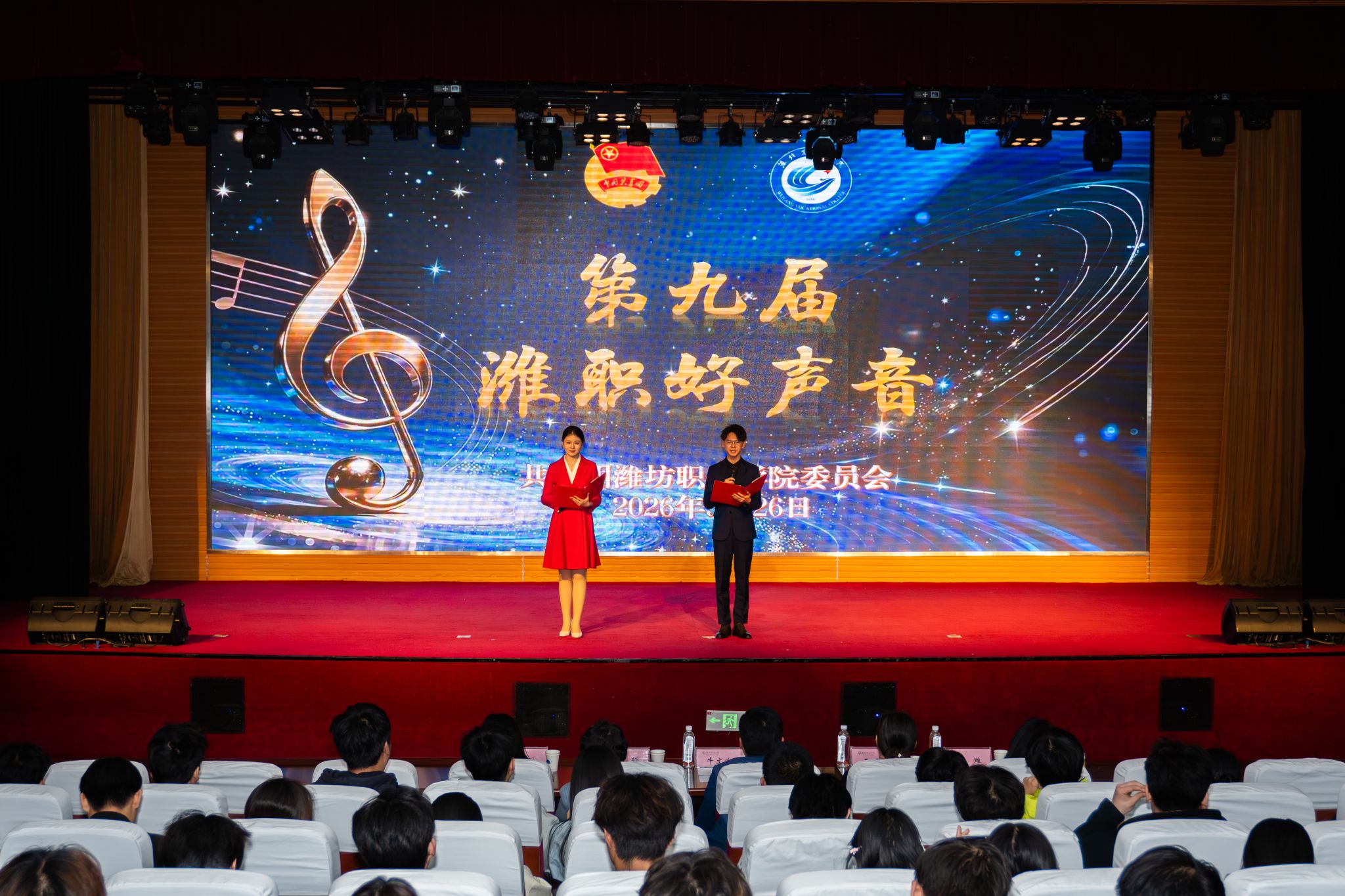 为迎接学院建校70周年,鼓励青年大学生传唱一批具有鲜明时代气息和爱校荣校情怀的优秀歌曲,全面营造喜庆热烈、文明高雅、充满活力的校庆文化氛围,3月26日,学院在滨海校区图书馆报告厅举行第九届“潍职好声音”校园歌手大赛,5位教师担任评委,300余名学生参加活动。