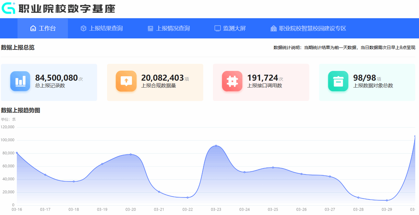 该项评估,评价内容全部来自学院数据中心常态化推送至教育部数字基座(职教大脑)的数字教育数据。2025年秋季学期,学院累计推送1072万余项数据,涵盖教学管理、教师发展、学生工作、教科研管理、资产图书、党建思政、校企合作、国际交流、管理服务等10个办学维度、32个数字化应用场景。评估重在考查全国职业院校的大数据质量、应用效能、技术能力等方面的相对水平,通过教育部开发的评估算法,自动对32个数字场景的常态化应用情况按照“ABCDE”5个级别分别生成评价结果并给出综评等级,评估精准、客观。