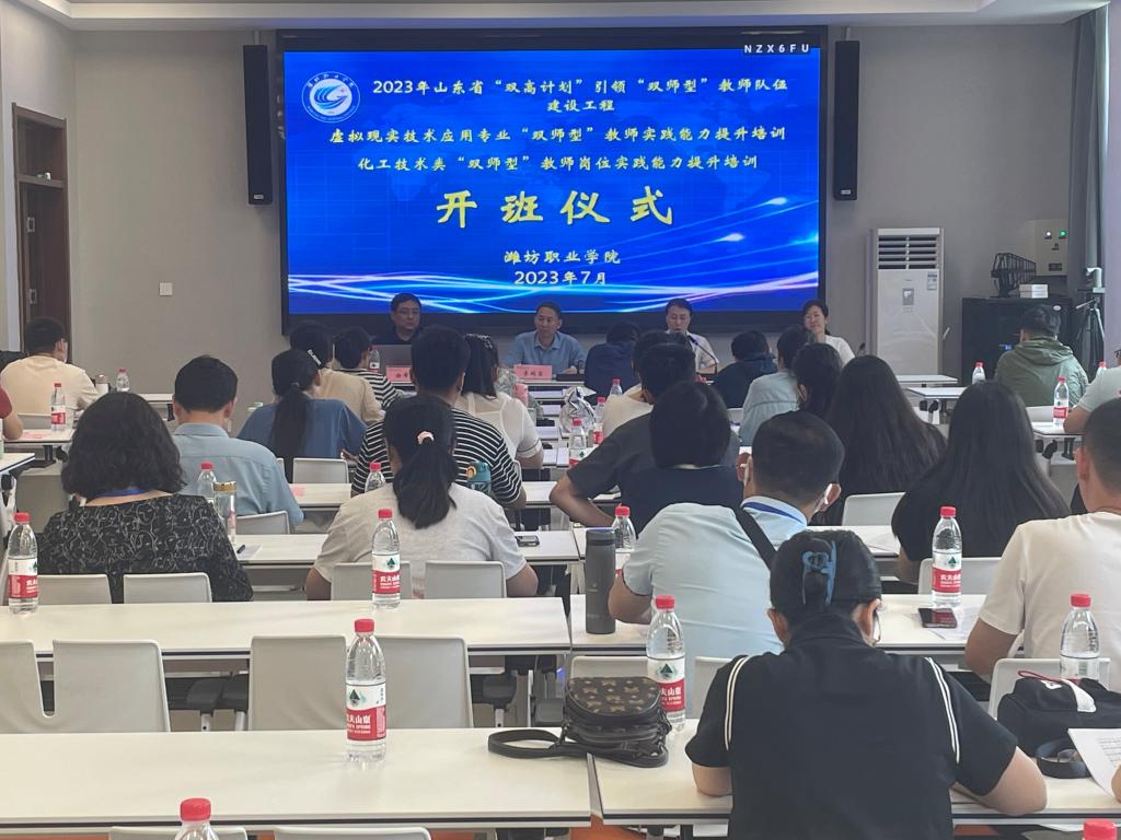 7月10日上午,山东省2023年度“双高计划”引领“双师型”教师队伍建设工程——化工技术类“双师型”教师岗位实践能力提升培训项目开班仪式在潍坊职业学院国际交流中心嵩山厅会议室隆重举行。学院领导李瑞昌,教师工作部部长、化学工程学院教学负责人、项目组工作人员及来自全省16所高职院校的30名骨干教师共同出席开班仪式。