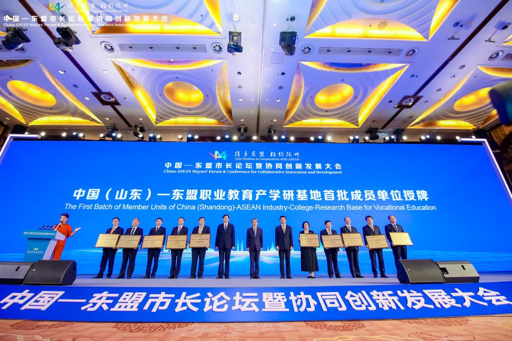 大会开幕式上,省委教育工委常务副书记、省教育厅党组书记、厅长李明,省委外办主任蔡先金,中国—东盟中心秘书长陈德海共同签署《共建中国(山东)—东盟职业教育产学研基地合作备忘录》,并为我院等10家首批成员单位授牌。