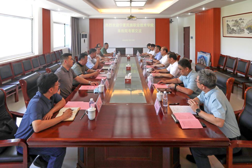 焦玉柱在了解了学院有关情况介绍后,对我院近年来发展建设取得的成绩给予了高度评价和赞赏,并介绍了宁夏民族职业技术学院的基本情况,希望两校在今后发展中进一步加强合作交流,共促发展。