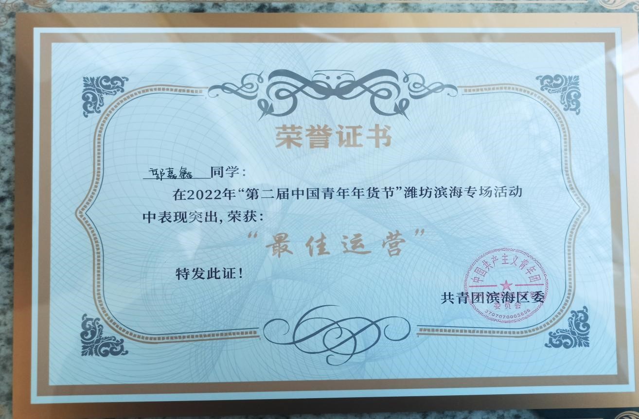 我院学生在第二届“中国青年年货节”潍坊滨海专场活动斩获佳绩