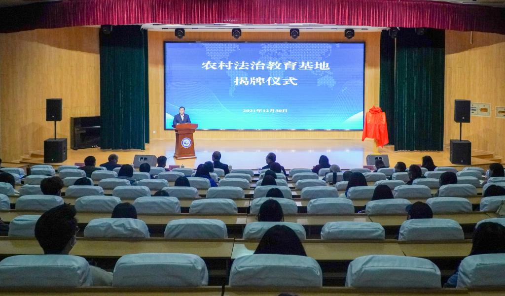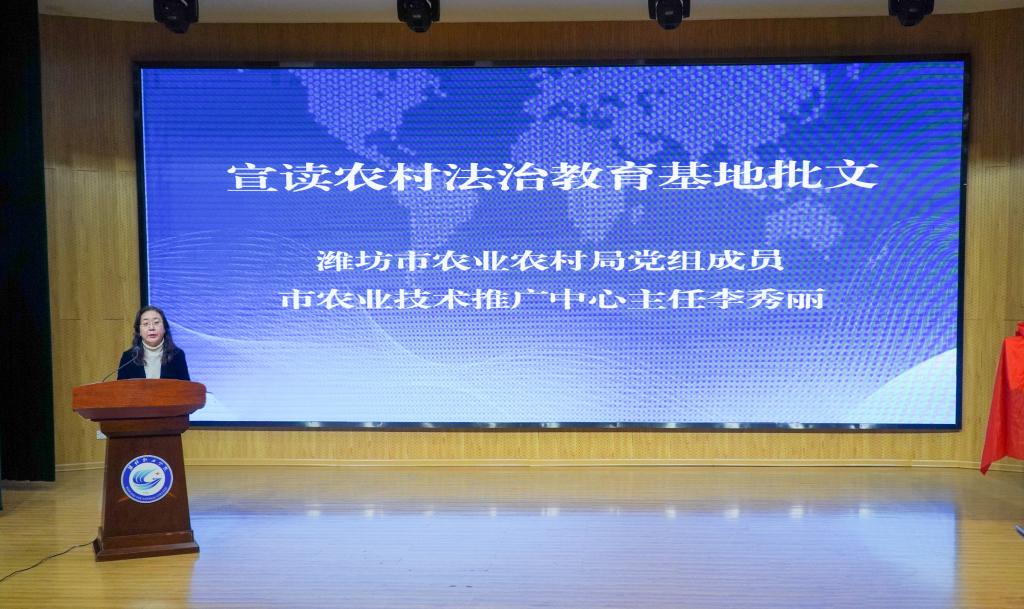 12月30日,农村法治教育基地揭牌仪式在潍坊职业学院奎文校区举行。潍坊市政府党组副书记、副市长马清民,潍坊职业学院党委书记马跃启共同为农村法治教育基地揭牌。潍坊市司法局党委书记、局长孙淑芳,潍坊市农业农村局党组成员、潍坊市农业技术推广中心主任李秀丽,潍坊市财政局党组成员、副局长李立东,北京凯德现代农业研究院院长李继凯,潍坊职业学院继续教育学院、思政部、农林科技学院及相关二级学院师生代表90余人参加揭牌仪式。潍坊职业学院副院长贺志强主持揭牌仪式。