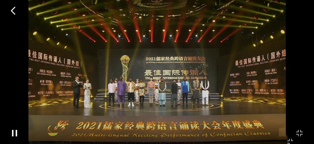 我院留学生获2021儒家经典跨语言诵读大会“最佳国际传诵人”称号
