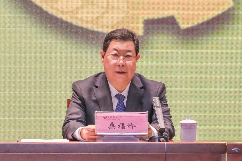 桑福岭代表学院党委对大会的胜利召开表示祝贺。他指出,在全国上下深入学习贯彻落实党的十九届六中全会精神,全体师生鼓足干劲、乘势而上谱写学院高质量发展新篇章之际,潍坊职业学院第三次学生代表大会的召开是推进学院学联学生会改革,努力开创团学工作新局面的一次青春盛会。第二次学代会以来,学生会紧密围绕学院中心工作和事业发展大局,立足广大学生健康成长成才的需求和实际,在引领青年学生和服务学校发展建设中发挥了积极作用,取得了显著成绩。他代表学院党委提出三点希望和要求,第一,希望广大青年学生坚定理想信念,自觉践行习近平新时代中国特色社会主义思想;第二,希望广大青年学生勤学修德,大力培育和践行社会主义核心价值观;第三,希望广大青年学生练就本领,积极投身干事创业的时代潮流。最后,桑福岭提出全体学生要进一步增强历史使命感和社会责任感,争做潍职精神、时代精神和民族精神的传承者、践行者,乘势而上,以改革创新的气魄,奋发竞进的状态、出色的成绩来向学院交上一份完美的答卷,以崭新姿态主动担起新时代新使命,为全力推进学院“双高/职教高地”建设、省级文明校园创建做出新贡献。