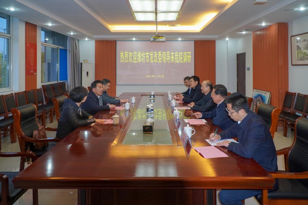 11月2日下午,潍坊市发改委主任王富一行3人来我院调研工作。学院党委书记马跃启,党委副书记、副院长桑福岭,党委委员、副院长刘德强会见客人,财务处、基建处负责同志陪同调研。