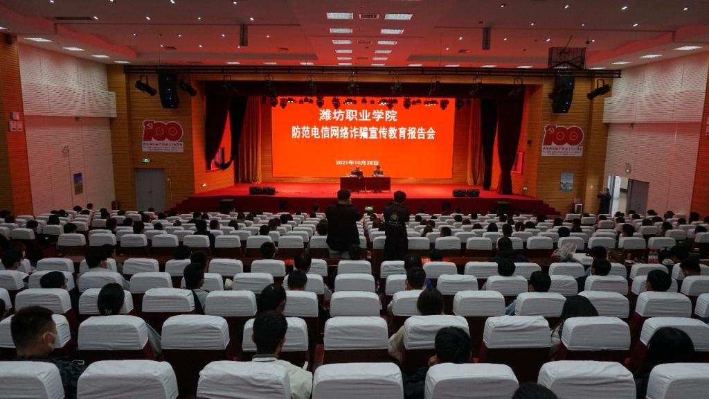 为增强大学生防范电信诈骗意识,切实提高防范水平和预防能力,10月28日下午,学院在图书馆报告厅举办大学生防范电信网络诈骗宣传教育报告会。潍坊市公安局滨海分局刑警大队副大队长、二级高级警长于海鹏作了题为《莫让诈骗斩断飞翔的翅膀》的报告。安全保卫处、学生工作处、两校区各二级学院近400余名师生参加了现场和线上报告会。