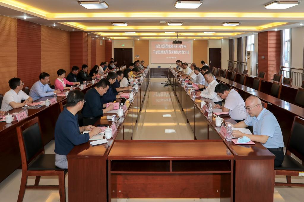 9月27日下午,国家教育行政学院副调研员佛朝晖带领第66期干部进修班学员29人来我院考察交流。学院党委书记马跃启会见客人,党委委员、副院长李瑞昌,党委委员、纪委书记郭晓辉,党委委员、副院长刘德强,党委委员、组织人事处处长付一明,党委委员、办公室(统战部)主任(部长)任培华陪同考察交流。
