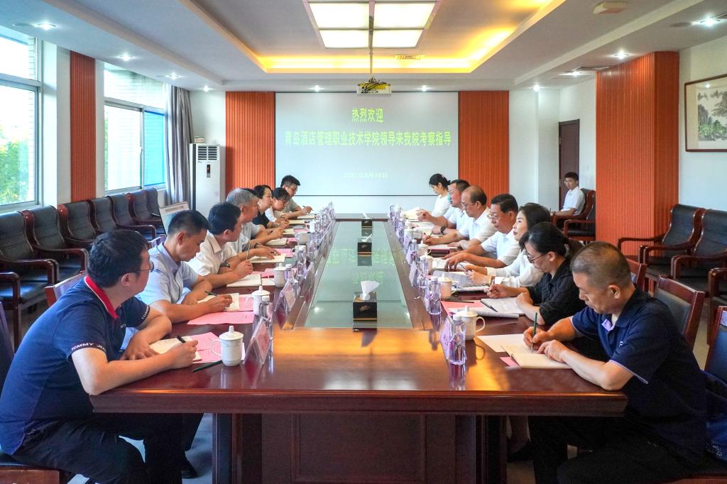 9月14日下午,青岛酒店管理职业技术学院党委书记李达一行来我院考察交流。学院党委书记马跃启会见客人,党委副书记、副院长桑福岭,党委委员、组织人事处处长付一明陪同考察交流。