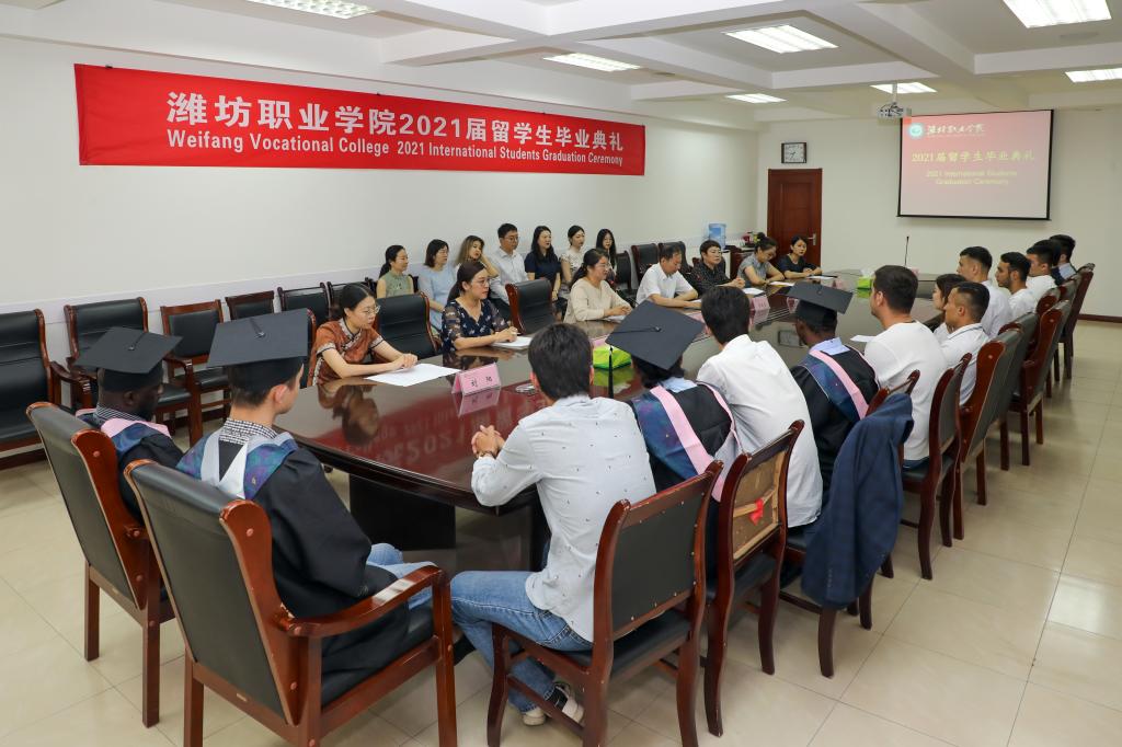 7月8日上午,学校2021届留学生毕业典礼在奎文校区11号楼会议室举行。学校副校长李瑞昌、国际教育学院和国际商务学院相关负责人和任课教师、班主任以及全体在校留学生参加典礼。