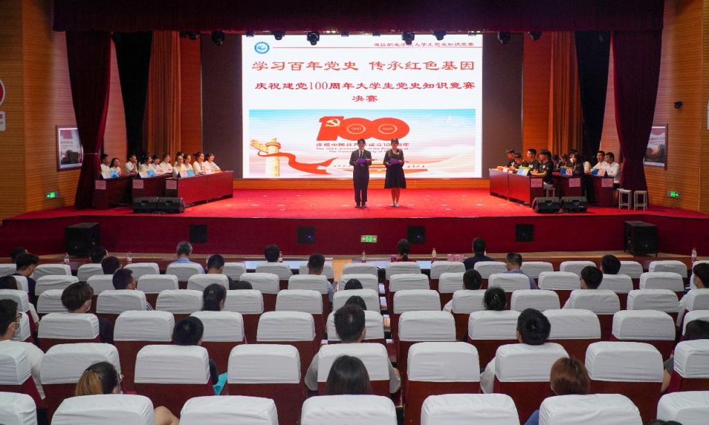 为庆祝中国共产党成立100周年,7月1日下午,学校“学习百年党史,传承红色基因”庆祝建党100周年大学生党史知识竞赛决赛在滨海校区图书馆报告厅举行。思政部负责同志,各二级学院分管学生副院长,思政课教师代表,二级学院学生代表200余人观看了比赛。