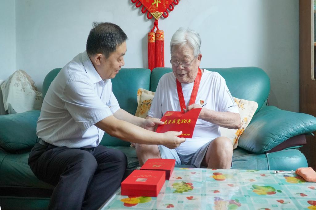 在老党员们的家中,学校领导们详细询问了他们的健康状况、家庭情况,和他们共同回顾了中国共产党的历史,大家都由衷感谢共产党的英明领导,全心全意为人民谋幸福的丰功伟绩。领导们为他们颁发并佩戴了“光荣在党50年”纪念章,感谢他们多年来对学校改革发展作出的贡献,并向他们致以节日的问候和衷心的祝福。