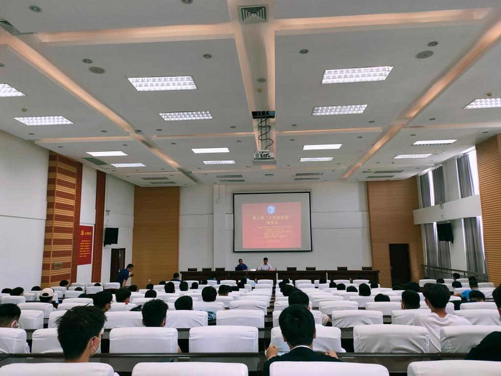 5月27日,学校在滨海校区举办第三期“工匠进校园”报告会。本次报告会邀请潍柴动力股份有限公司首席技师汤海威向师生分享了求学求艺、技能锤炼和拼搏奉献的经历,用自身经历和深刻体会诠释了劳模精神和工匠精神。报告会由招生就业处(创业教育学院)主办,机电工程学院、汽车工程学院近百名师生参加报告会。