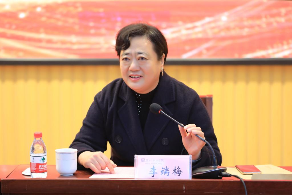 李端梅致辞,她简要介绍了潍坊市职业教育与学前教育发展状况,对潍坊市学前教育产教联盟过去一年的工作给予充分肯定,并对联盟下一步的工作提出了要求。