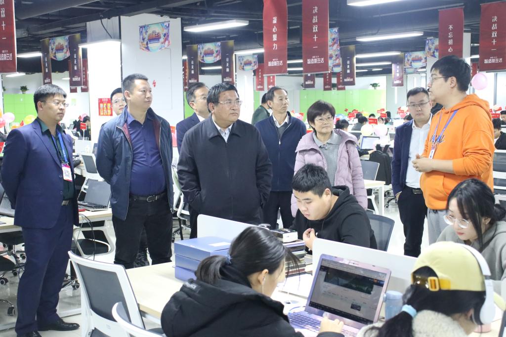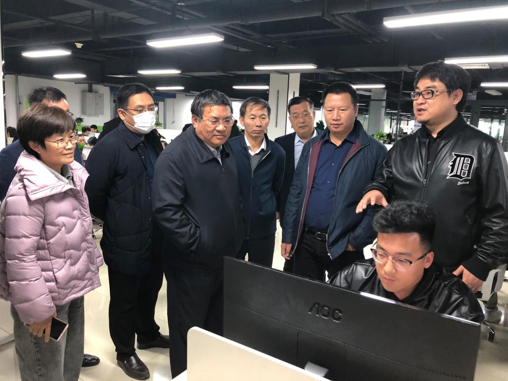 座谈交流前,王家爱一行参观了数字小镇和“新迈尔产教融合双创实训基地”。(巨荣峰供稿)