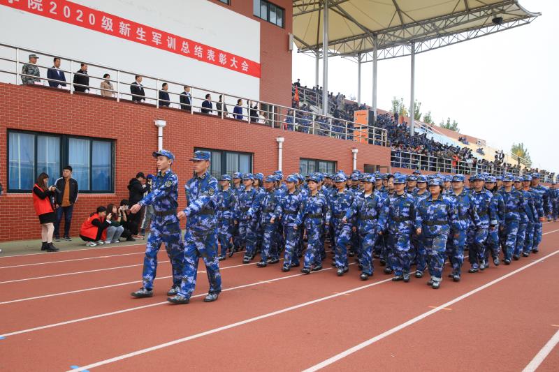 军训表彰大会在庄严的国歌声中拉开帷幕。各军训方队精神饱满、英姿飒爽,迈着铿锵有力的步伐依次通过主席台。整齐的队列,标准的动作,统一的服装,嘹亮的口号充分展现了军训取得的丰硕成果和2020级新生们昂扬的精神风貌。
