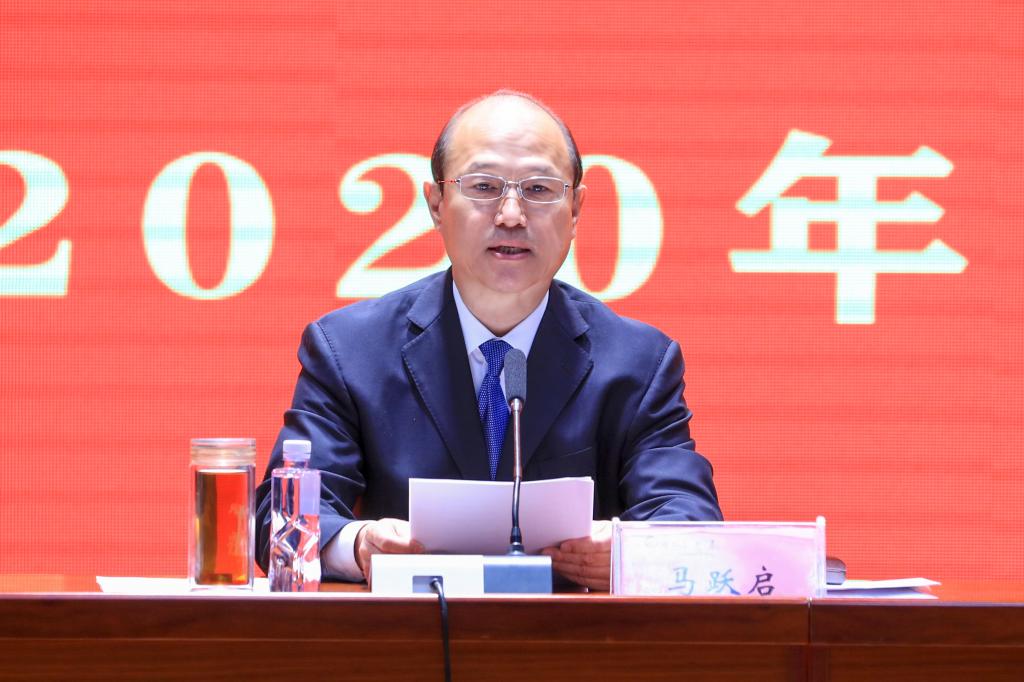 马跃启致辞,他充分肯定了学院两年来的教学工作成绩,从国家、学院发展背景分析了此次教学工作会议的重要意义,就坚持并进一步落实教学工作中心地位提出四点要求:一是全面加强对教学工作的领导。学院党委要坚持定期研究教学工作制度和重大教学改革意见,推进教学改革及综合改革重大事项。二是坚持立德树人根本任务。突出学生和教师两个主体,通过“三全”思想政治工作格局、“五位一体”德育体系构建,把立德树人根本任务落实落细落地。三是坚持向教学一线倾斜。爱护和关心教师,加强基础条件建设和激励机制建设,调动大家干事创业积极性。四是抓好职业技能大赛。要巩固优势,打造职业技能大赛品牌。抓好全国职业技能大赛开幕式和承办赛项筹备及参赛工作,在国家级舞台上展示学院良好形象,以国赛组织及参赛佳绩回报上级党委政府及有关部门的信任和支持。马跃启要求,各部门、二级学院要学习贯彻落实好会议精神,认真组织学习,搞好任务分解,转变工作作风,加强检查督导,切实将会议精神贯彻落实到“双高/职教高地”建设、省级文明校园创建和“双招双引”、滨海校区重大基础设施建设等重点难点工作中去。