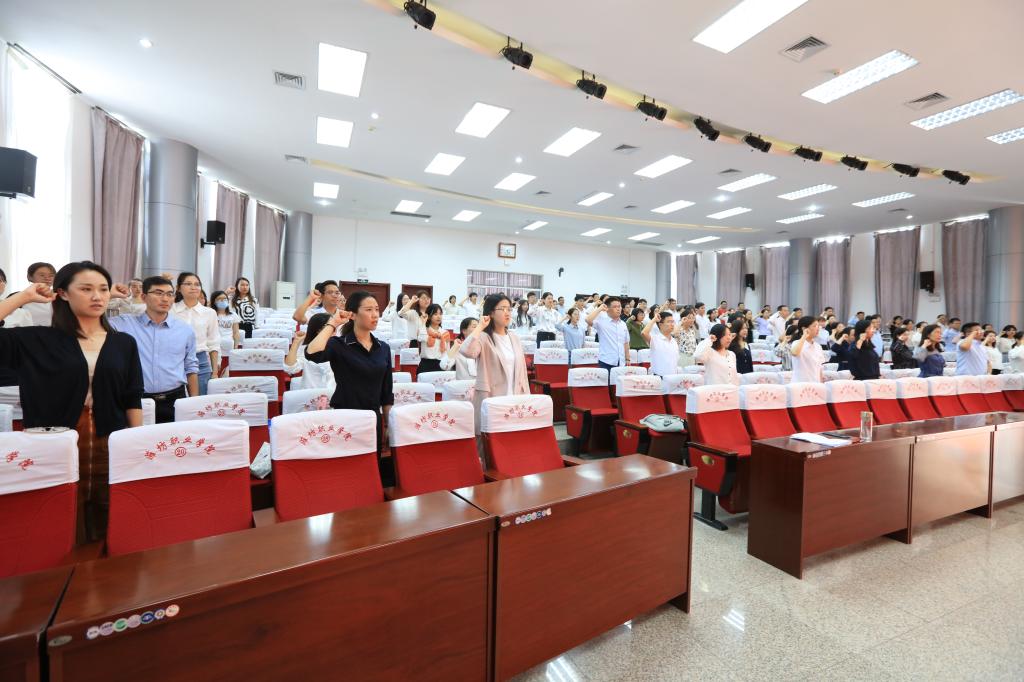 最后,与会教师庄严宣誓:“我志愿做一名潍坊职业学院教师,忠于职业教育,忠诚潍坊职业学院,秉承“明德尚学,强能善技”校训;明辨笃实,知行合一;育人为本,勤奋敬业;开放包容,为人师表;弘扬正气,勇于创新;崇实尚行,敢于争先;立志为学院事业努力奋斗!”铿锵的誓言表达了新教师的自我期许,更是对教育事业的庄严承诺。(耿晓哲供稿)