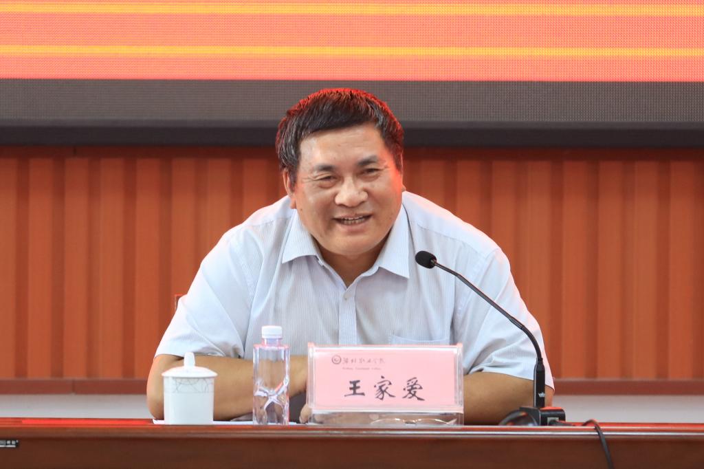 学院院长王家爱讲话。他对新进教师加入潍坊职业学院这个大家庭表示欢迎和祝贺。他指出,当前职业教育正处于黄金发展期,学院也处在建校以来最为激动人心的发展阶段,“双高/职教高地”建设如火如荼,新进教师在学院用人之际入职潍职,正逢其时;他强调,教师在学校发展中起决定性作用,学院一路负重前行,能在这片盐田上建设起一个水润木泽、鸟鸣鱼跃的全国优质高职院校和“双高”校,靠的就是敢打硬仗、能成大事的教师队伍,新进教师要把“崇实尚行”潍职文化和“敢于争先”潍职精神继承并传承下去;他期盼,新进教师要学高身正、为人师表,知行合一、心中有爱,通过自身努力在潍职这个舞台上施展才华、成就自我,最终成长为高素质、专业化、创新型的优秀教师、名师、大师。言者,深沉讲述,传道授业解惑,听者,侧耳倾听,注目沉思展望。王家爱最后对新进教师提出了四点希望和要求:一要转变角色、融入团队。在充分领悟学院精神文化内核的基础上,敞开心扉融入到潍职大家庭中,以满腔的热情投入到学院建设中去;二要不忘初心、立德树人。牢记从教初心和育人使命,言传身教、正向引导,做学生永远的导师;三要善于学习、勇于实践。跟上时代步伐,向书本学习、向实践学习、向学生学习、向先进榜样学习,做到触类旁通、一专多能,久久为功必有收获;四要坚守师德、不碰红线。以德立身、以德立学、以德施教,担负起传播知识、传播思想、传播真理,塑造灵魂、塑造生命、塑造新人的时代重任。